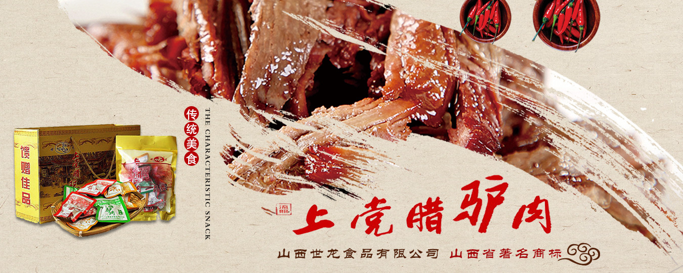 山西世龍食品有限公司是以“世龍”牌上黨臘驢肉系列產品為主導,集科研開發(fā)、良種繁育、基地建設、生產加工、市場營銷于一體的農業(yè)產業(yè)化國家重點龍頭企業(yè)、全國農業(yè)標準化示范區、全國食品行業(yè)優(yōu)秀龍頭企業(yè)、山西省農業(yè)產業(yè)化重點龍頭企業(yè)、山西省農產品加工“513”工程單位、山西省帶動貧困地區基地建設重點龍頭企業(yè)、山西省民營畜牧業(yè)示范基地、山西省質量信譽AAA級單位、山西省重合同守信用單位、山西省消費者協會誠信單位、山西省民營科技企業(yè)。
